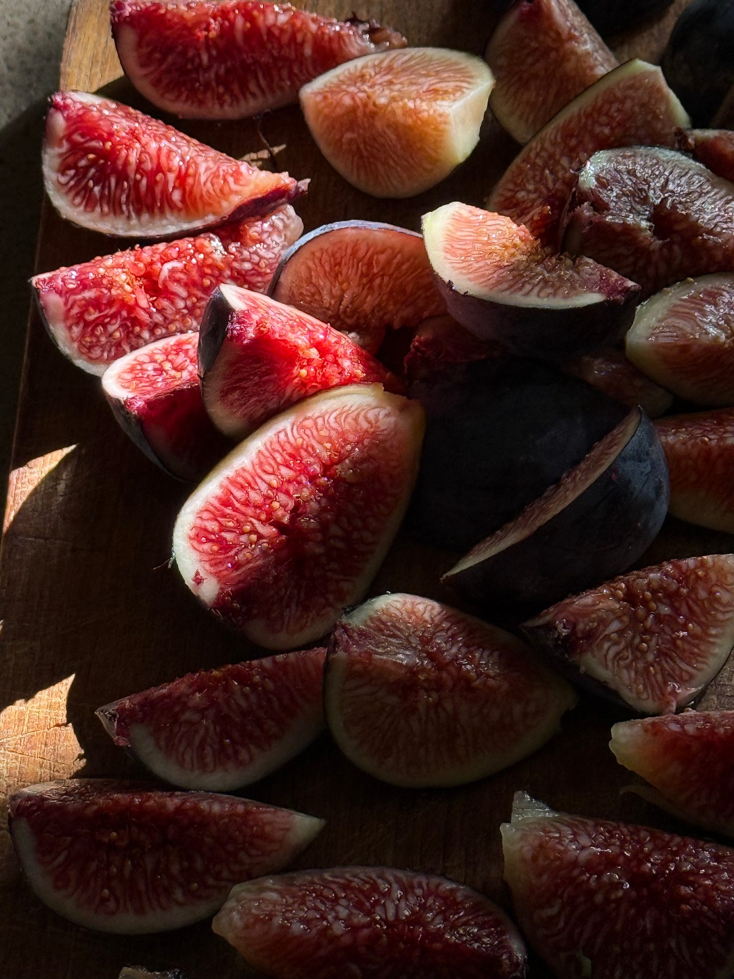 Following on from the tomatoes earlier in the week, I was also fortunate to collect a small batch of figs from the French garden I was staying at. These trees produce a bananas amount of figs and the owners are slaves to making sure none of it goes to waste. Fig puree, sun dried figs, fig chutney, a full figgy production. This recipe is perfect for a handful of figs and they make a lovely jammy top to this cake. Figs are a gentle flavour so be sure to add a good helping of orange and generous pinch of salt for the batter of the cake to compliment and really bring out the figs.