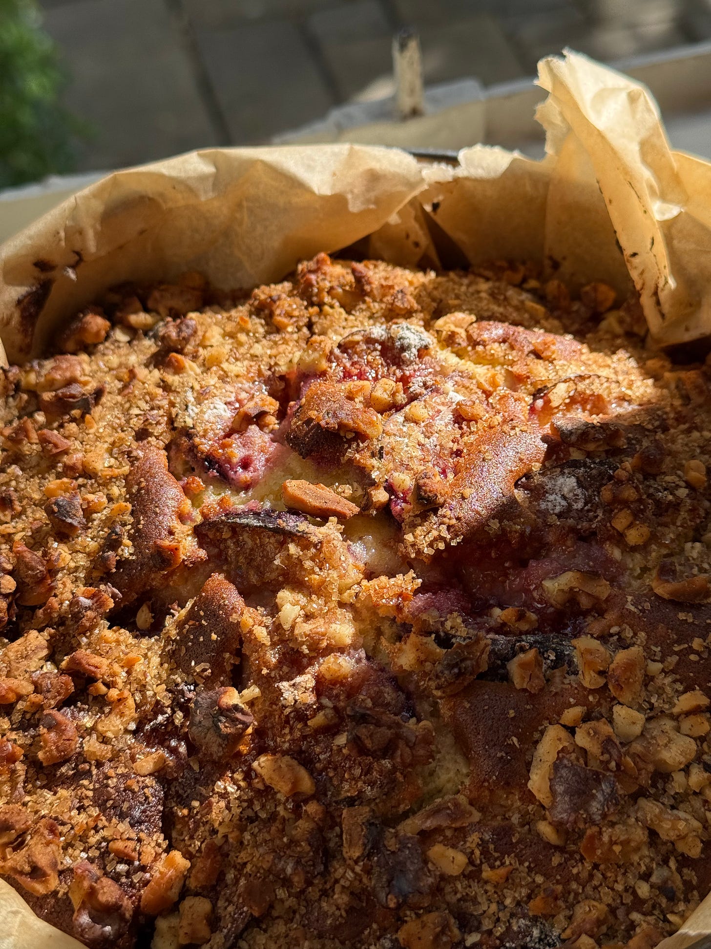 Mix the Demerara, walnuts and cinnamon together. This will go on after 45 minutes of baking, of which the total bake is 1hr 10mins.